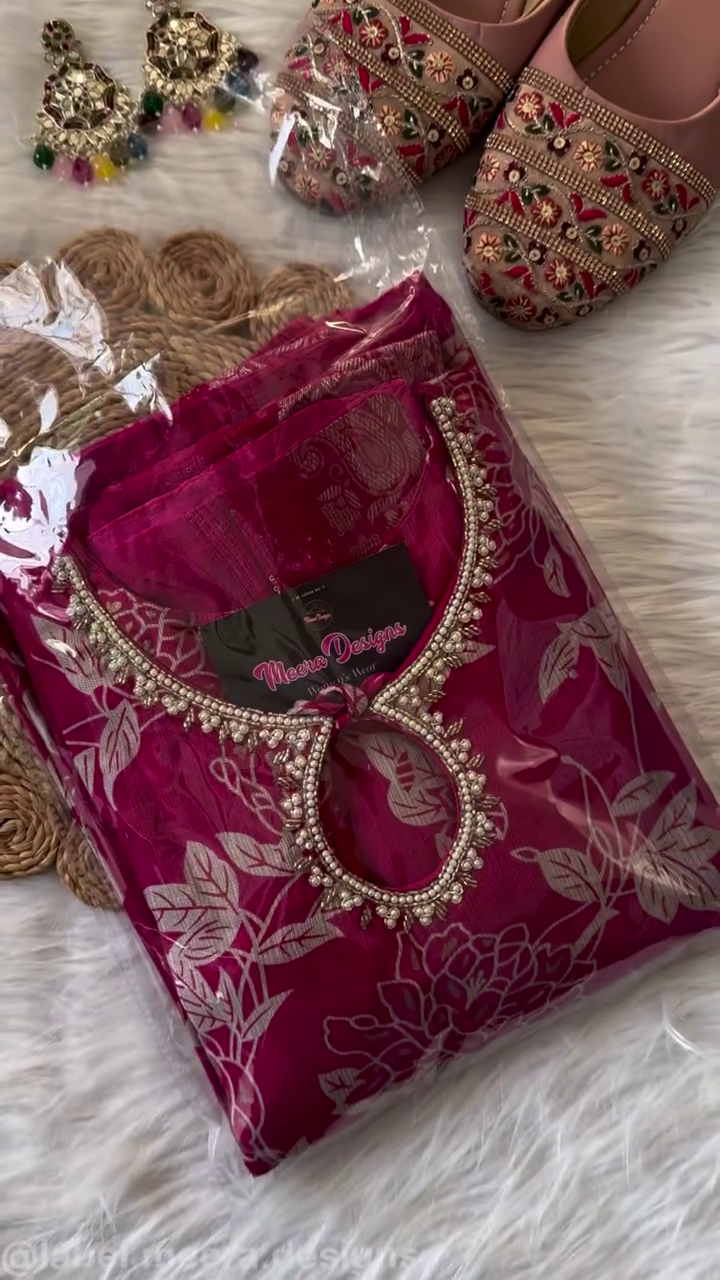 Step into timeless elegance with this beautifully crafted Banarasi Suit, designed to add grace and sophistication to your ethnic wardrobe. Made with luxurious Banarasi Silk, this suit set is perfect for weddings, festive occasions, and grand celebrations! 💖