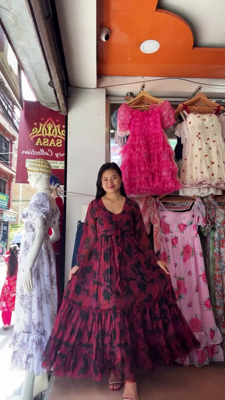 โค๏ธ๐ค Red & Black Floral Long One-Piece Dress โ Elegant, Flowing & Effortlessly Chic ๐ธ