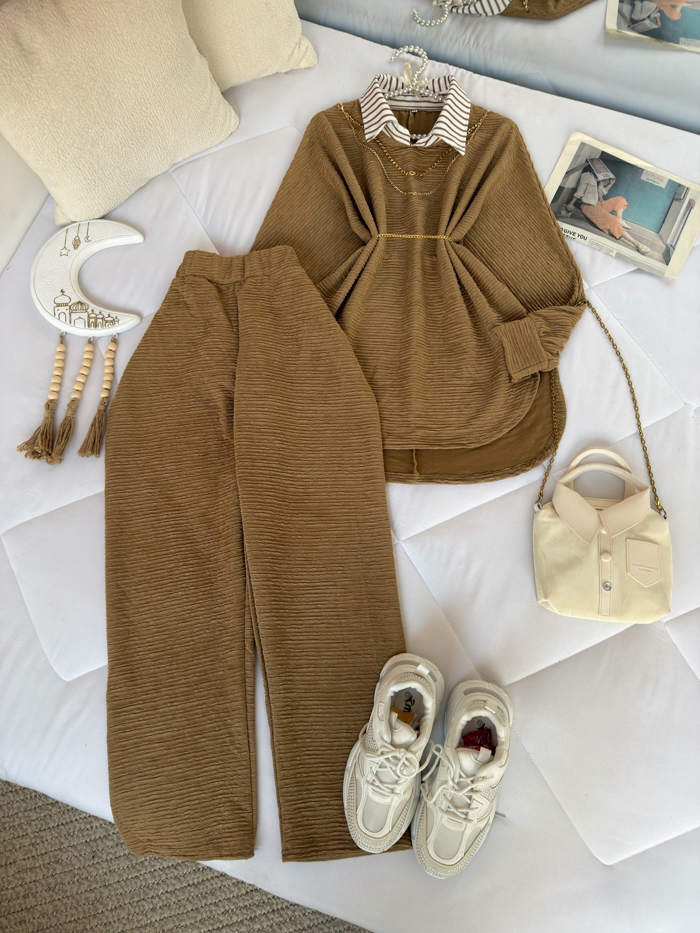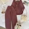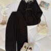 Paired with matching high-waisted straight-leg trousers, this co-ord set creates a sleek, elongated shape ❤️ The elastic waistband offers flexibility and ease, making it perfect for long days out, travel, casual meet-ups, or even semi-formal gatherings.