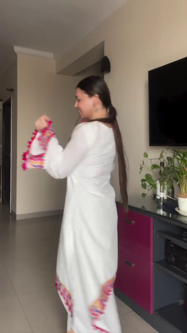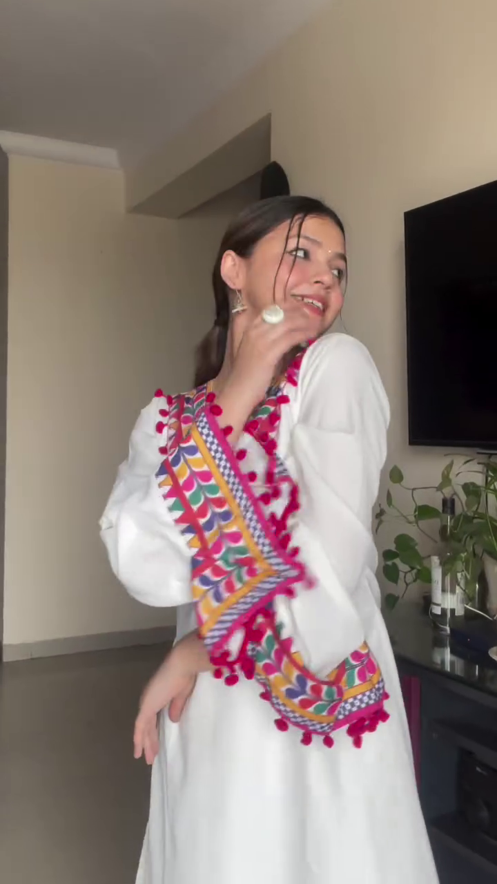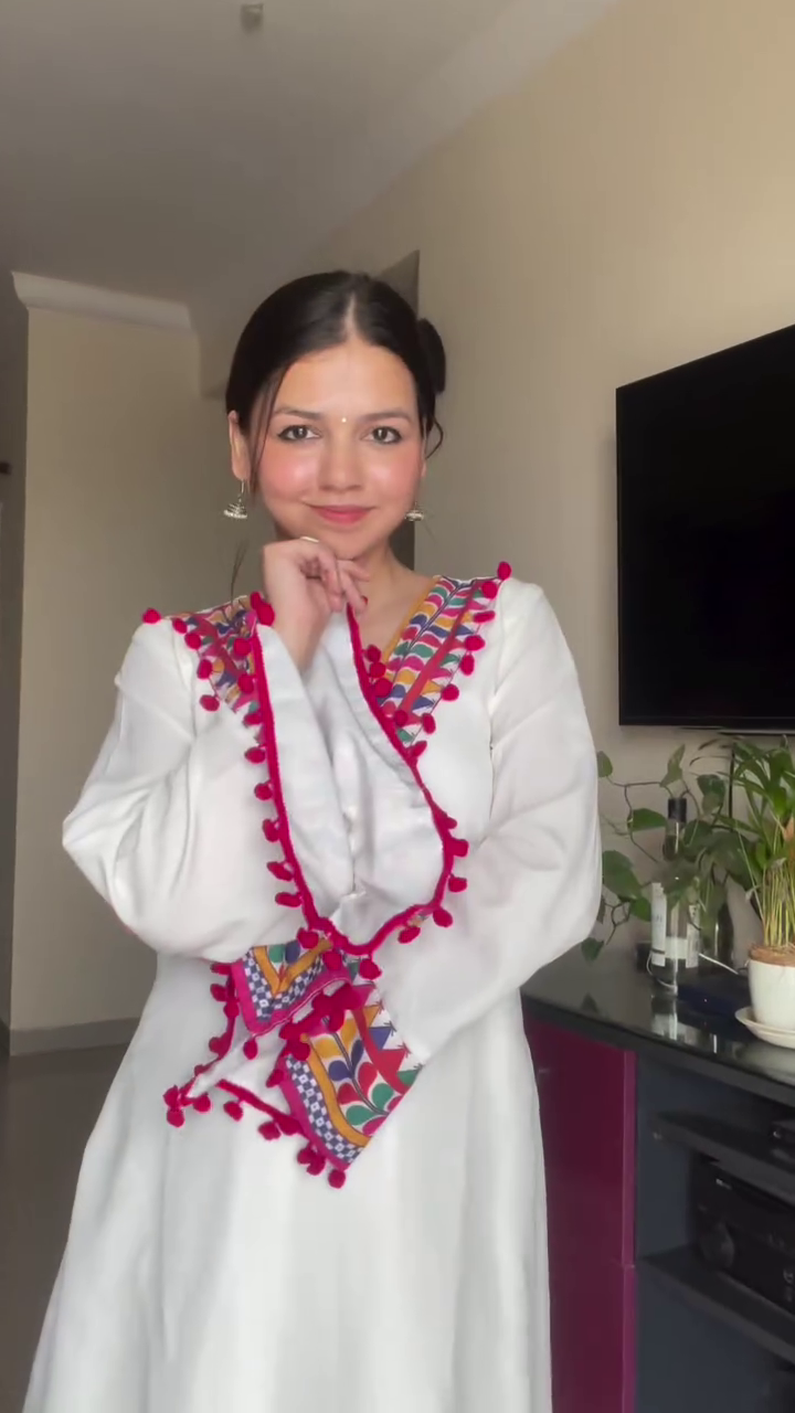 This outfit beautifully balances simplicity and vibrancy, making it a must-have for women who love colorful festive charm in everyday wear. The pom-pom detailing and bright trims add fun to the elegance of white β making it unique, stylish, and budget-friendly β¨.