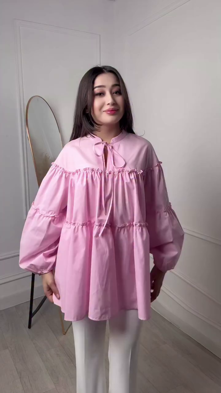 The neckline is finished with a subtle tie-up bow detail πŸŽ€, adding a sweet and elegant touch. The long balloon sleeves with gentle gathers enhance the overall feminine feel, giving the top a graceful volume without overwhelming the look. The lightweight, breathable fabric makes it ideal for every season β€” wear it comfortably from day to evening ✨