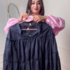 Crafted in a delicate blush pink shade 🌷, this tunic features beautiful tiered ruffle detailing across the bodice, creating a soft, romantic movement with every step. The relaxed, flared silhouette offers a flattering drape that suits all body types while ensuring all-day comfort.