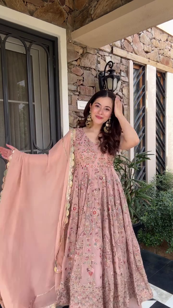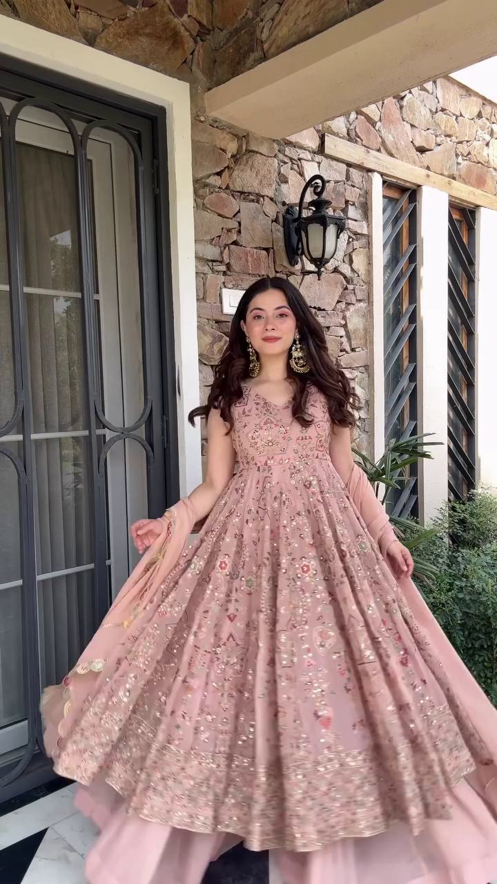 Make every occasion extra special with this breathtaking blush pink Anarkali gown ✨. Its delicate embroidery, soft pastel tone, and flowy silhouette create a perfect balance of royalty and feminine charm, making it an ideal choice for weddings, festive functions, or evening celebrations.