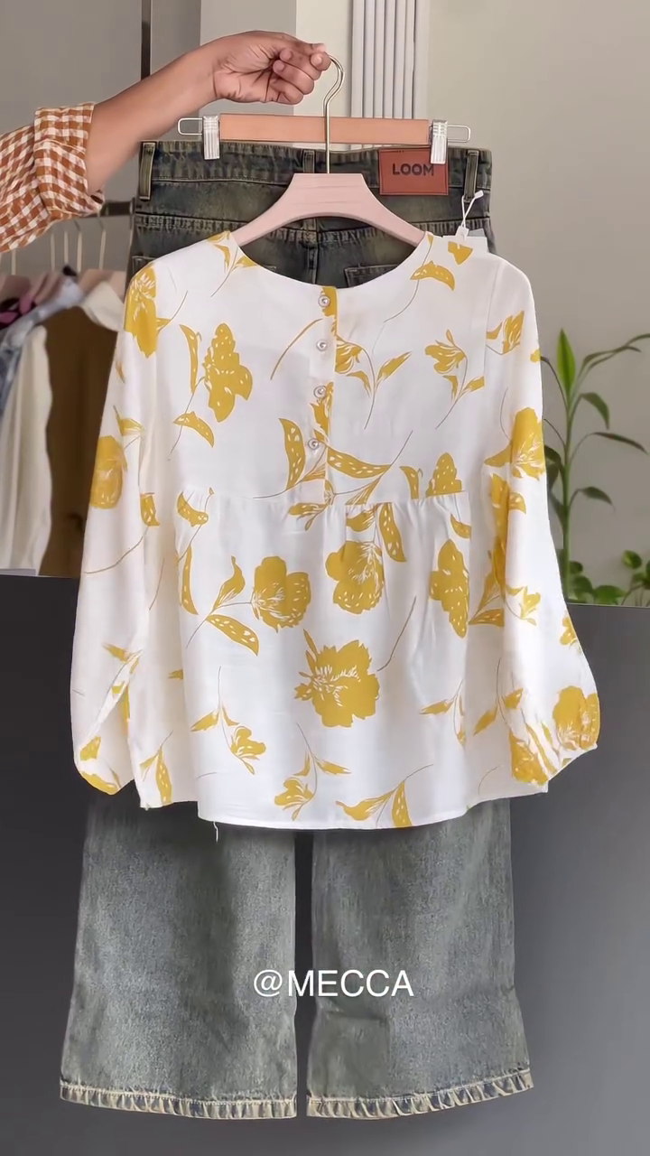 #MeccaFashion #FloralTop #DenimLove #CasualChic #EverydayStyle #EffortlessElegance #OOTD #WomenStyle #TrendyOutfits