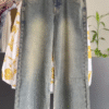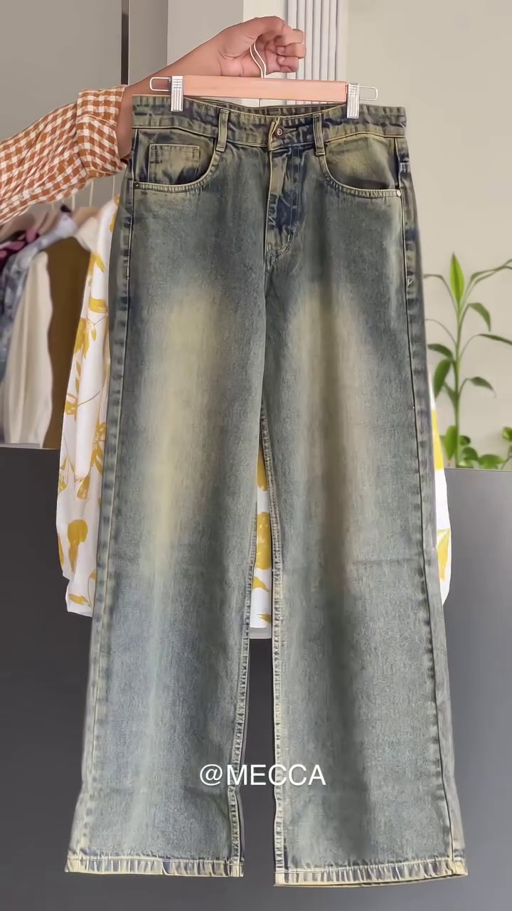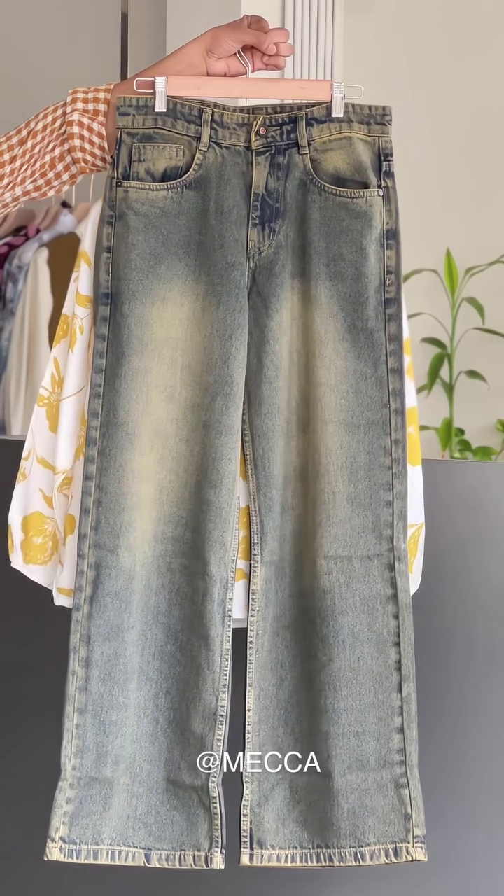 Pairing it is our vintage-style faded denim, designed for a flattering high-waist fit that elongates your legs and ensures all-day comfort. ๐ The mild washed texture and soft stretch fabric offer that perfect blend of durability and flexibility. Whether you tuck in the top for a sleek look or keep it flowing for an effortless chic vibe, this outfit strikes the right balance between modern minimalism and timeless charm.
