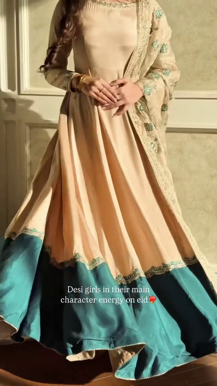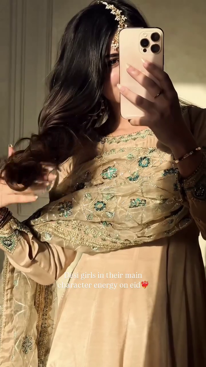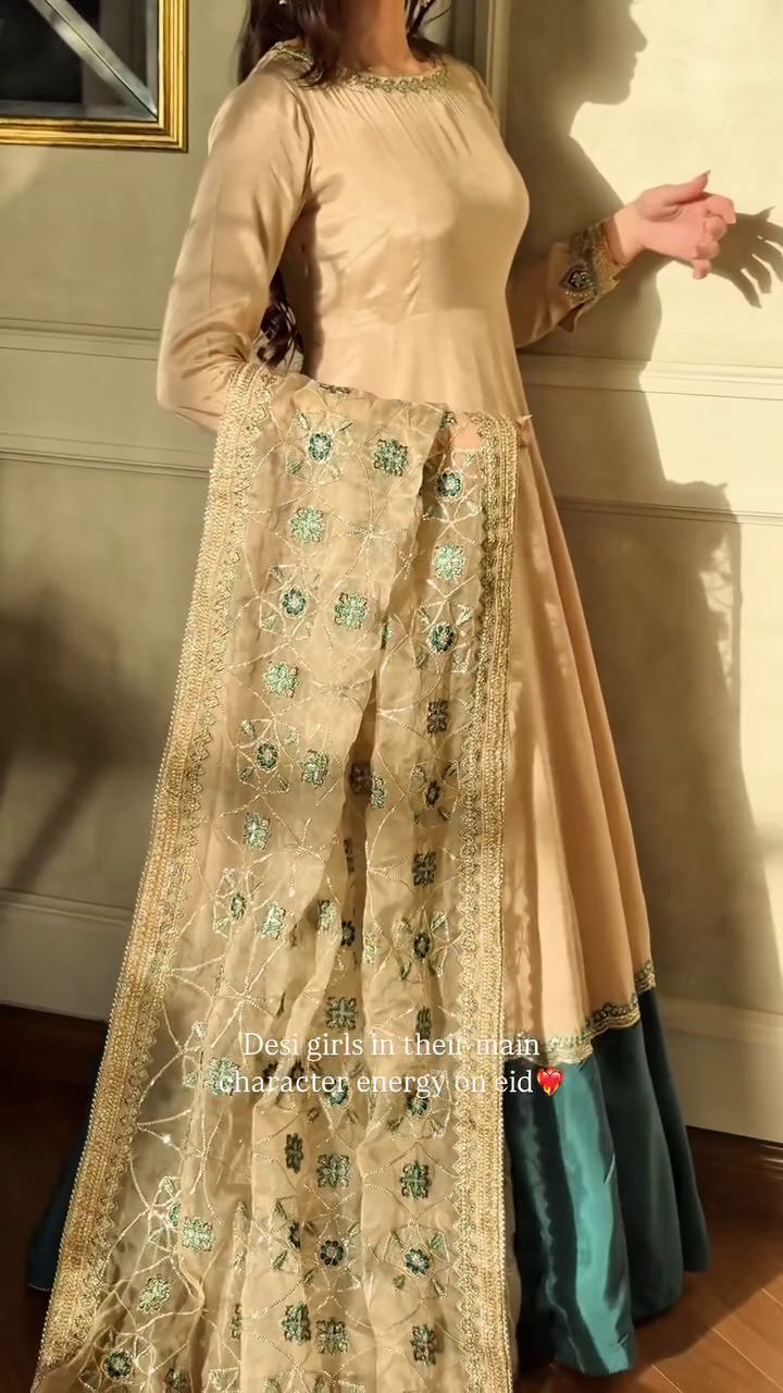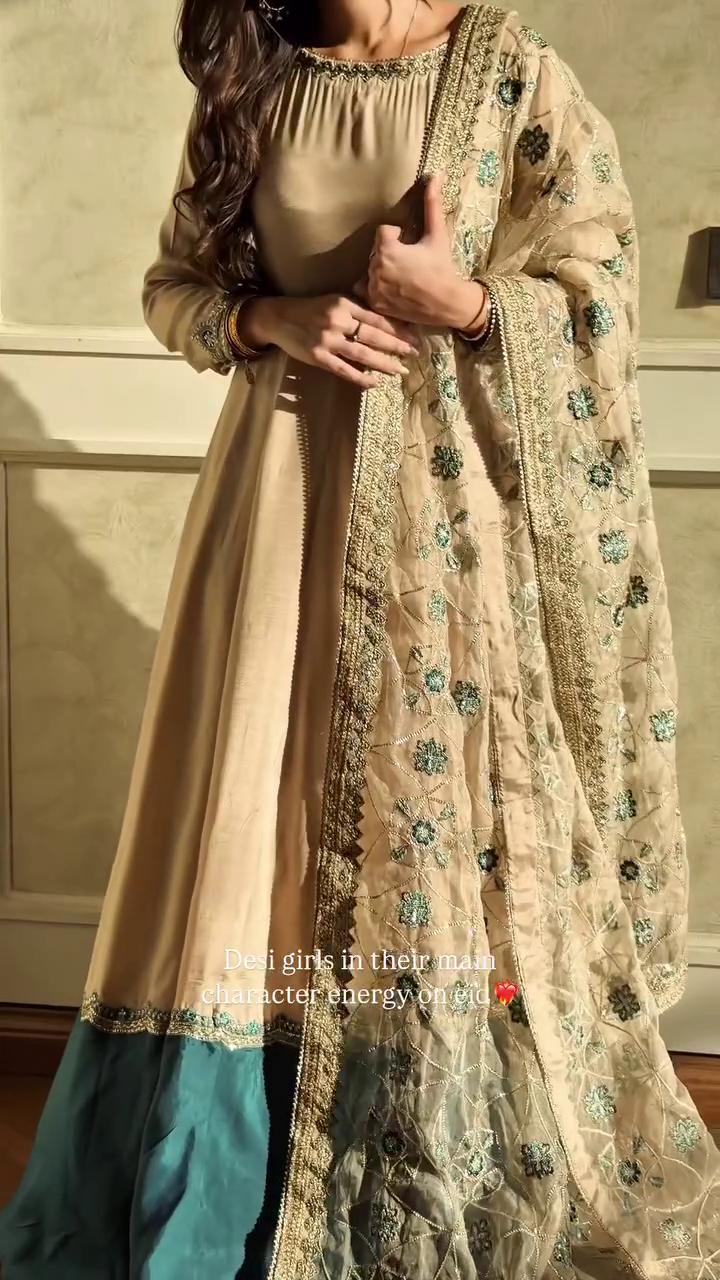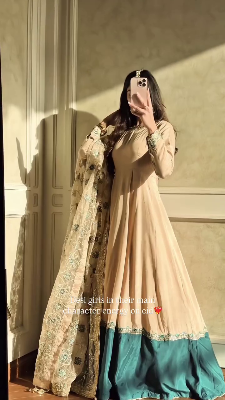 Trendy & Modern Styleπ Golden Glow Anarkali with Embroidered Dupatta πΌ