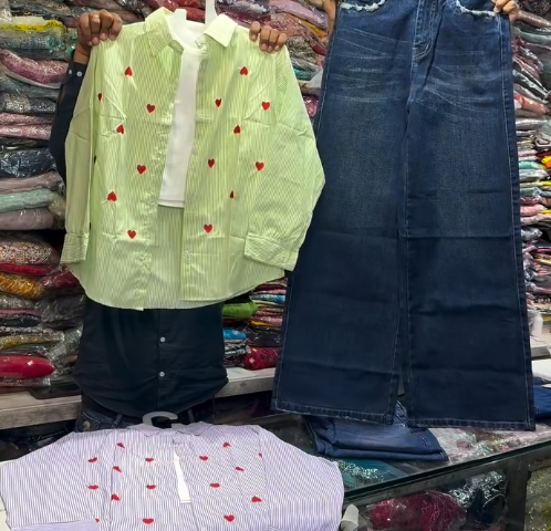 💙 Blue & White Striped Shirt – Timeless stripes with trendy red heart embroidery.