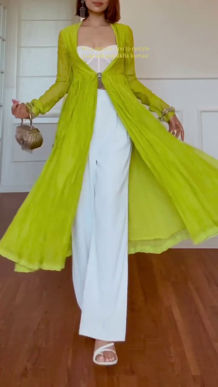 Bring freshness to your festive & casual wardrobe with this contemporary Angrakha jacket set that blends tradition with modern glam β¨. The vibrant lime green angrakha-style jacket paired with crisp white bottoms creates a look thatβs playful, chic, and effortlessly stylish.