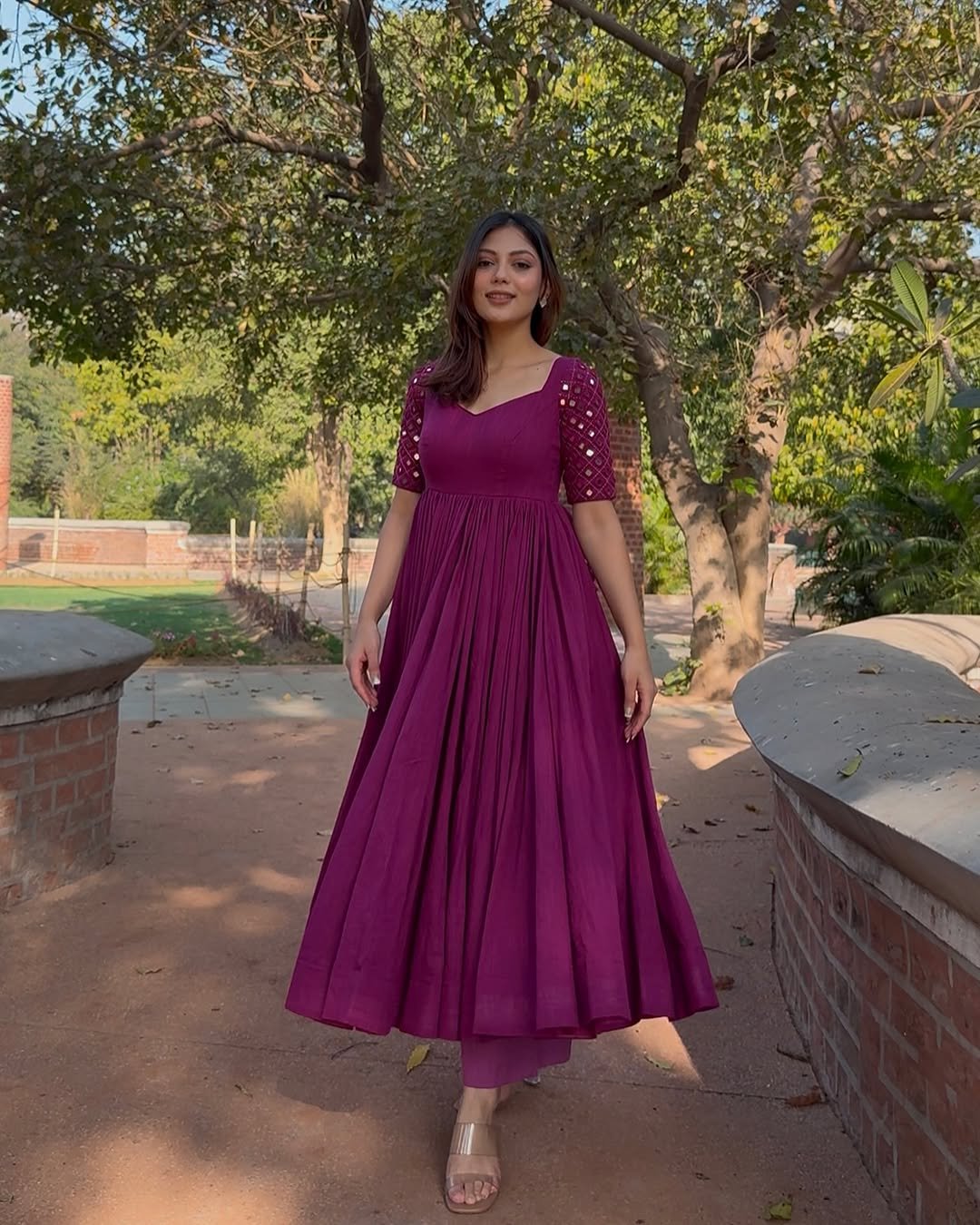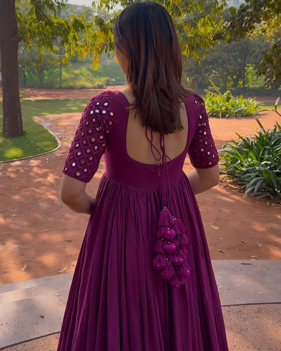 ✅ Embellishments: Intricate mirror work on the sleeves, adding a dazzling touch