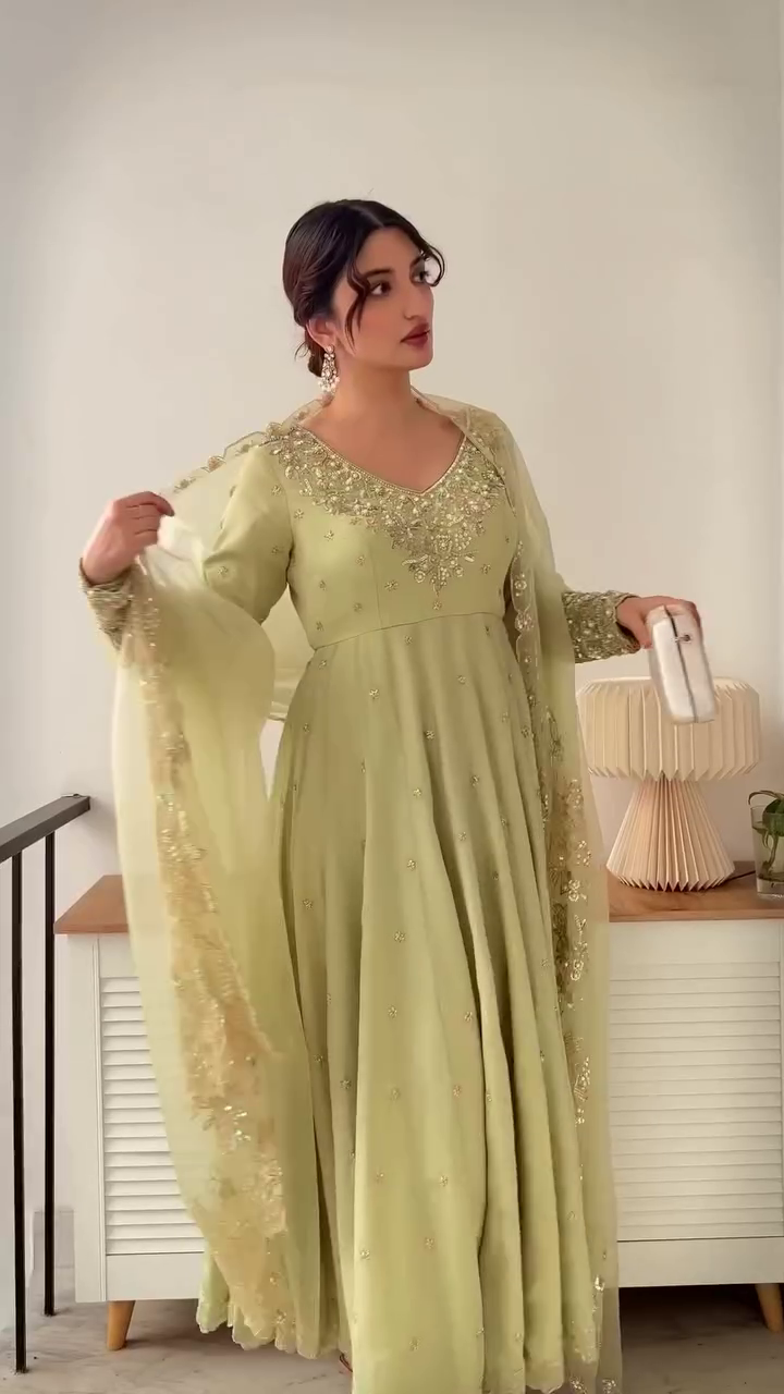 Be the first to review “💫 Ethnic Elegance in Pastel Green with Gold Work 🌸”