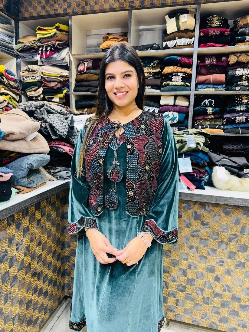 + Free ShippingA-Shape Shirt with Afghani Bottom: Premium Velvet Ensemble