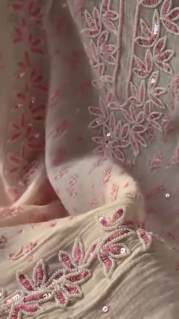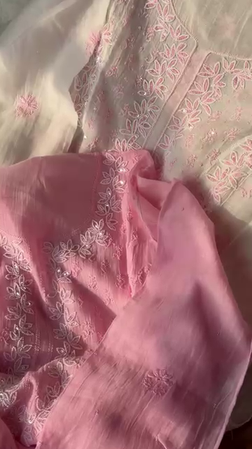 Soft, airy, and luxuriously smooth, the Mul Chanderi fabric drapes like a dream, offering both comfort and poise. The kurta is adorned with intricate handwork, detailed with delicate beads and fine thread embroidery, making it a truly timeless piece. Each stitch and shimmer tells a story of artistry passed down through generations.