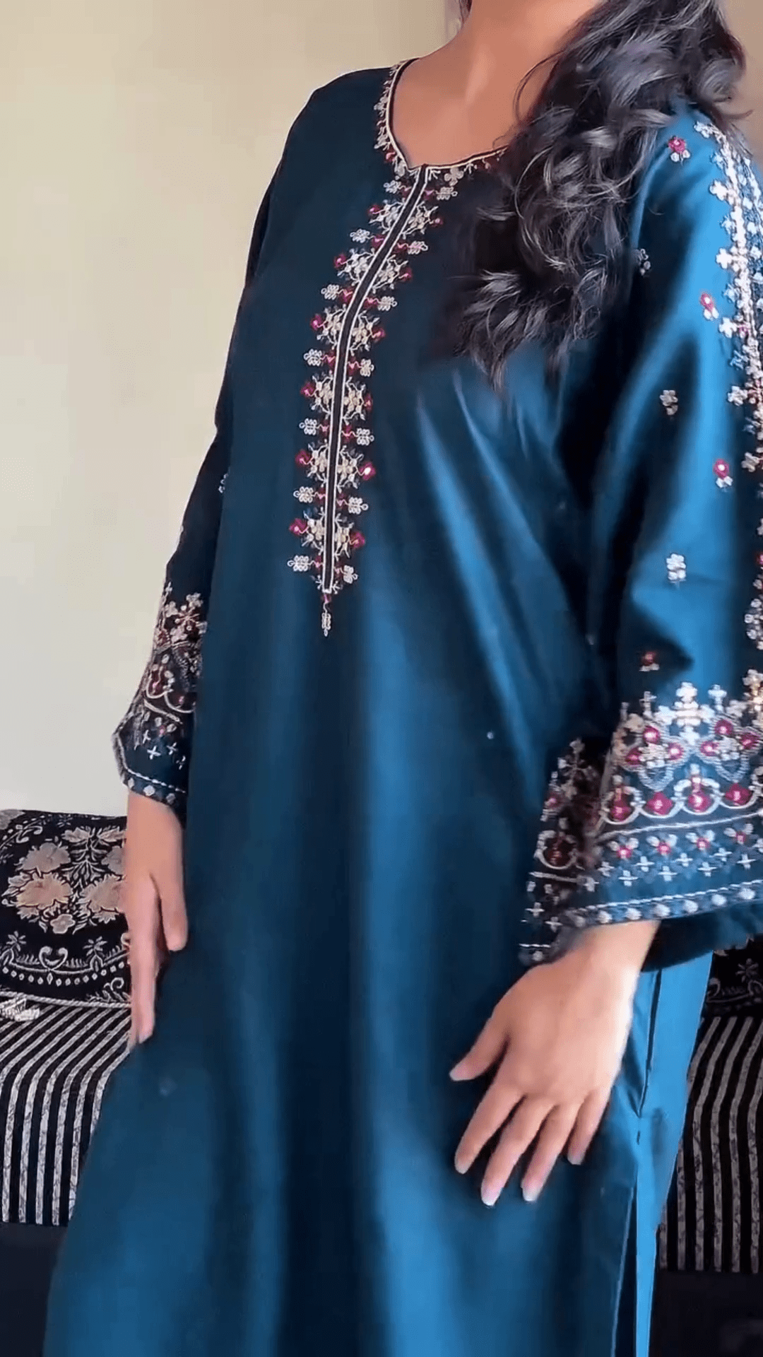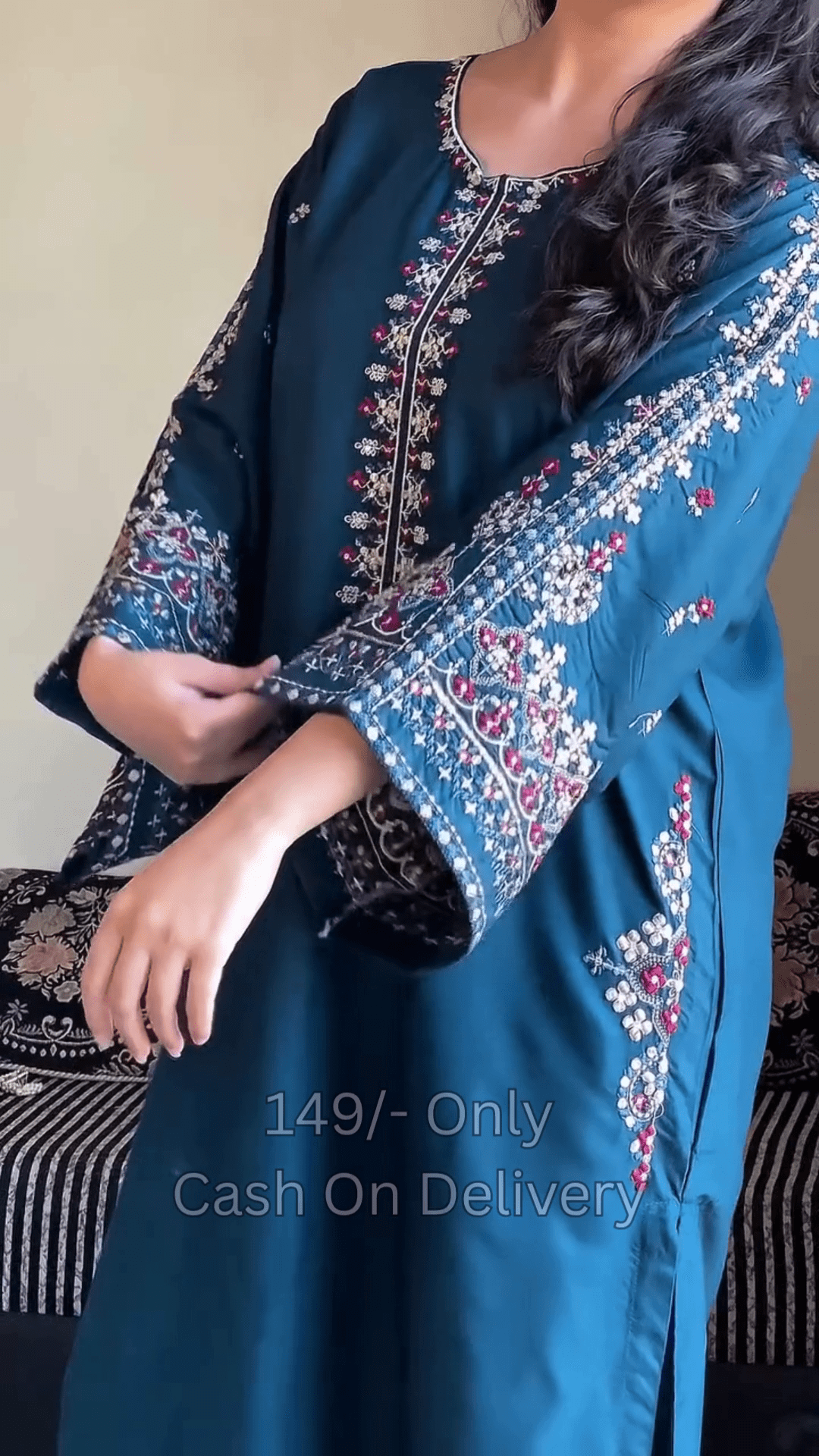 The Kurta Is Crafted From Soft, Breathable Fabric, Making It Ideal For All-Day Wear. Delicate Embroidery On The Neckline, Sleeves, And Front Panel Adds A Touch Of Intricacy, Highlighting The Artisan Detail In Every Stitch. Whether You’re Attending A Family Function Or Heading To A Festive Gathering, This Kurta Ensures You Look Polished And Elegant.
