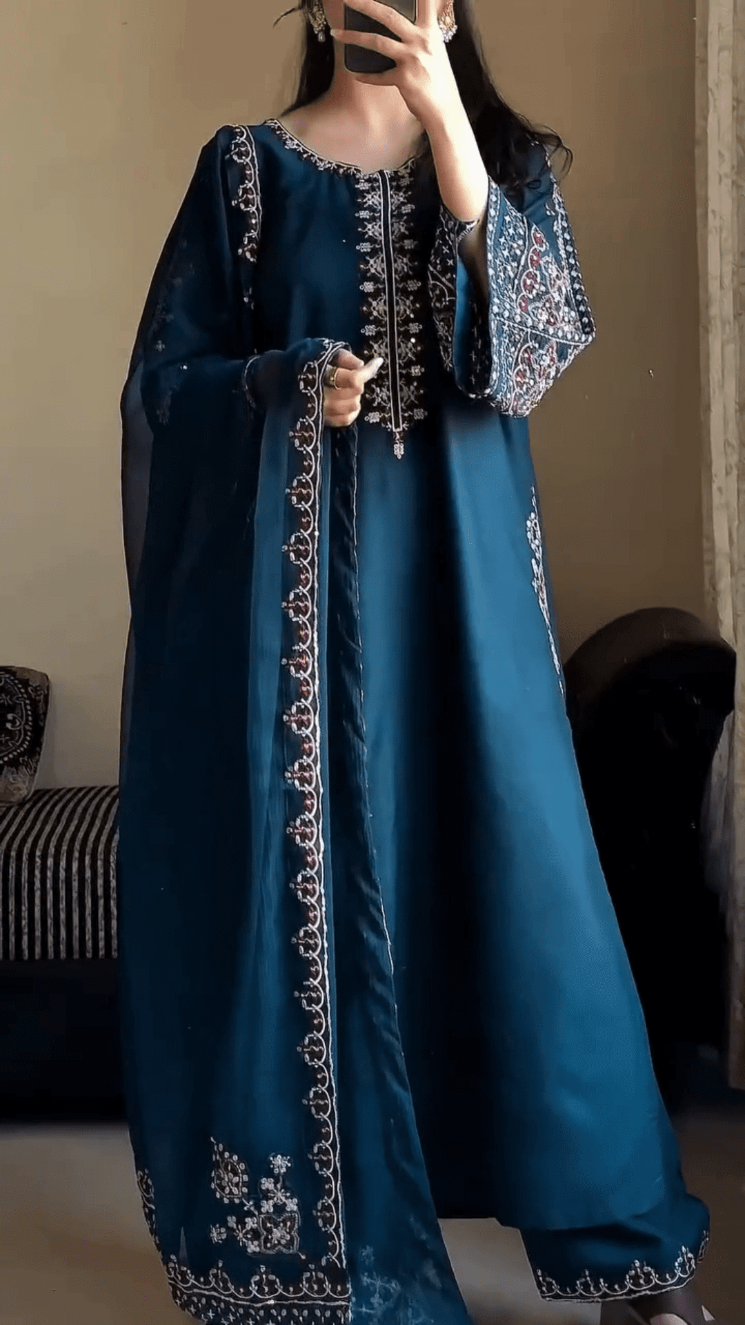 Elegant Embroidered Kurta With Trousers & Printed Dupatta Set For Women ✨