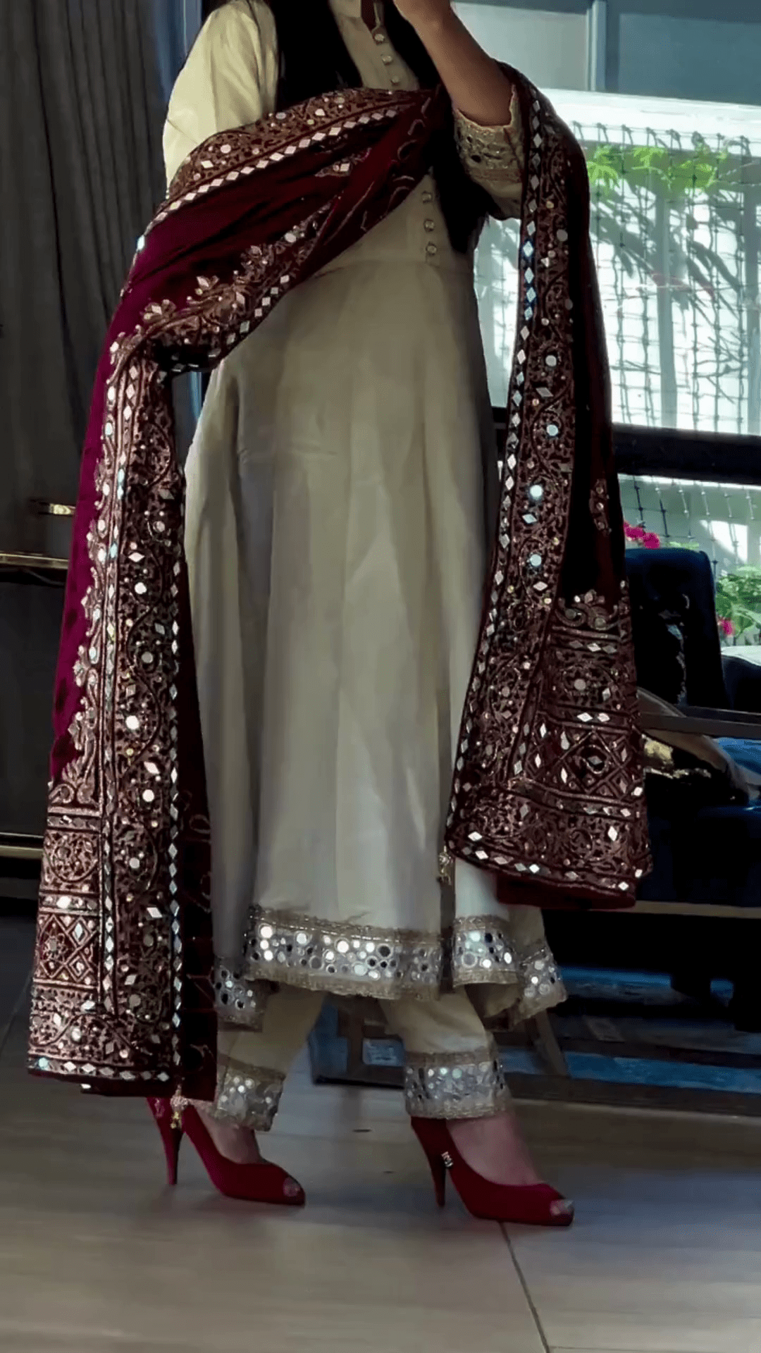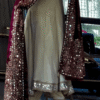 Crafted With Premium Fabric That Offers Both Comfort And Style, This Suit Is A Blend Of Subtle Glamour And Statement Detailing. The Top Features Delicate Embroidery, Intricate Neckline Work, And Elegant Sleeve Detailing That Enhances Its Overall Appeal.