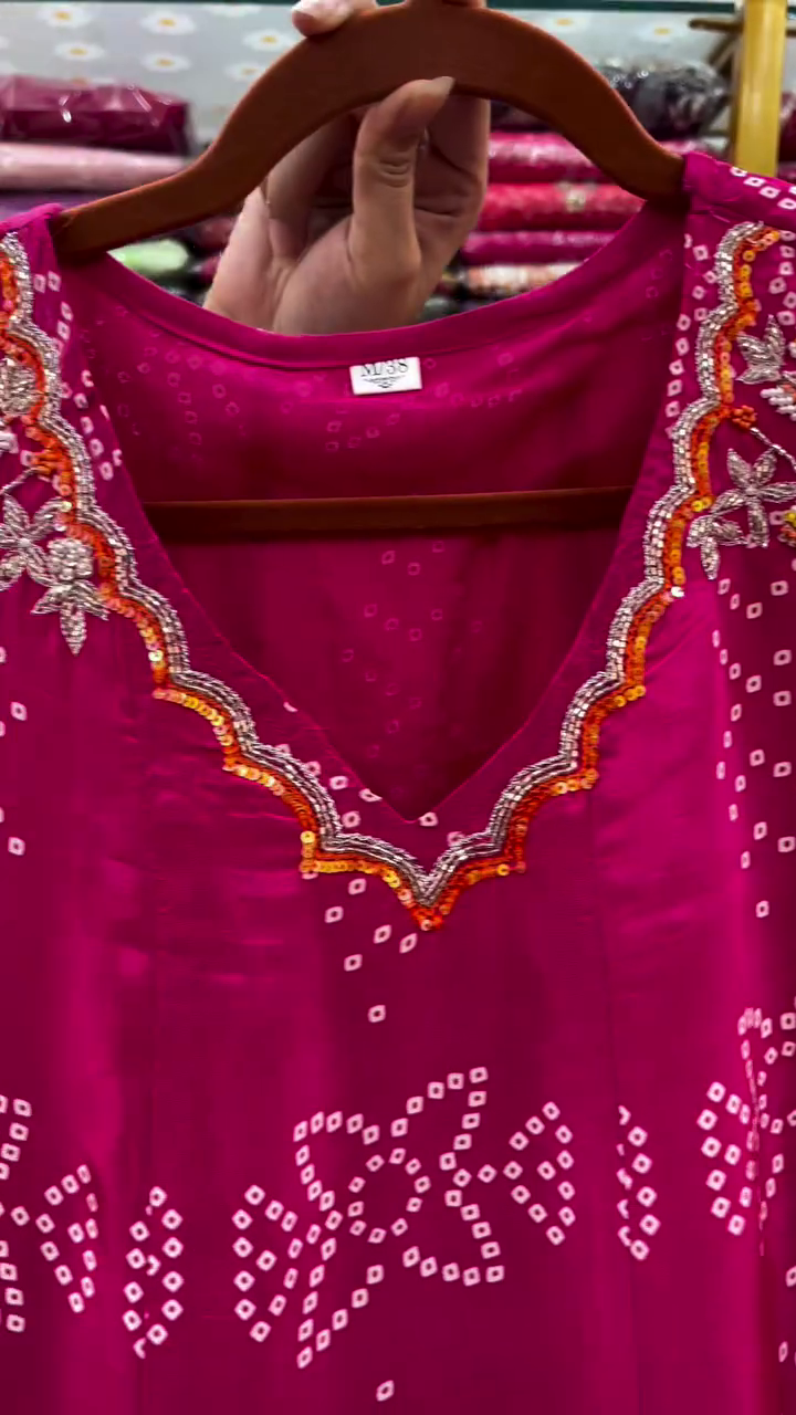 New Rani-Pink Silk Handwork Kurti-Pant With Dupatta