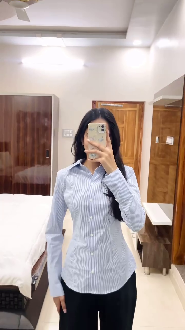 Style it tucked into high-waisted trousers, layered under a blazer, or worn loose over jeans for an effortlessly put-together look. Add minimal jewelry, pointed flats or loafers, and you’re set for whatever the day brings.