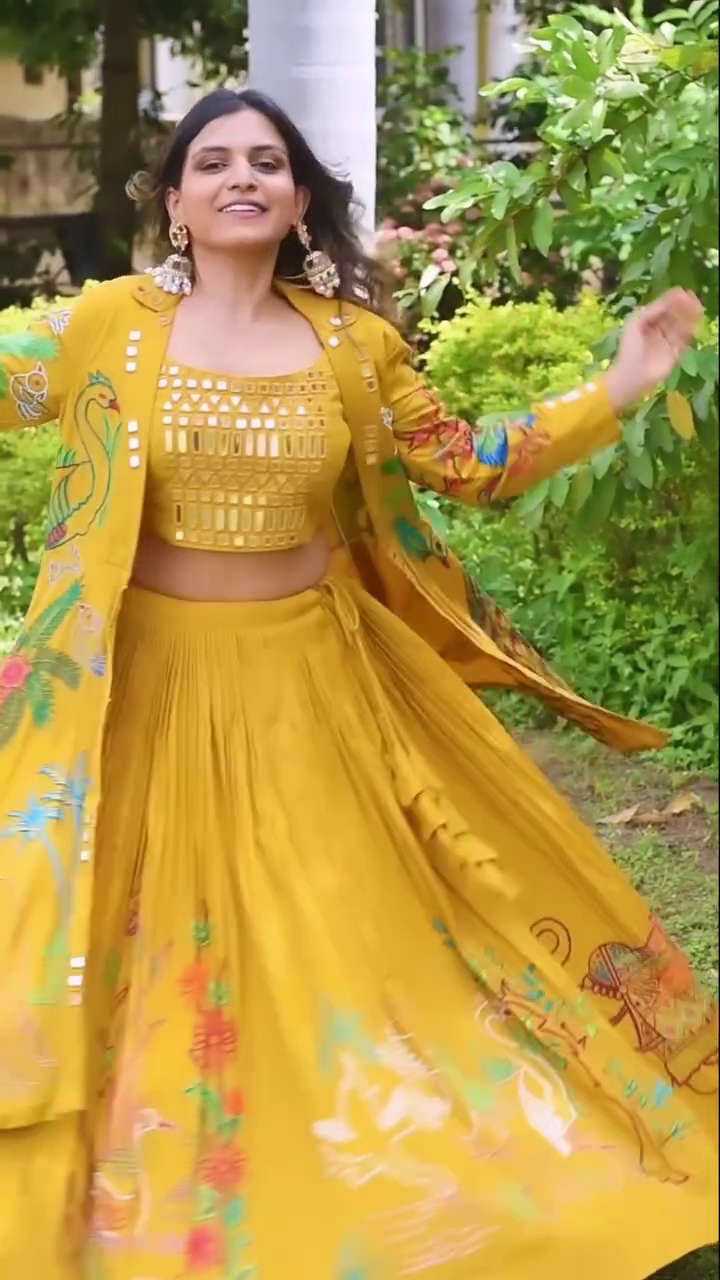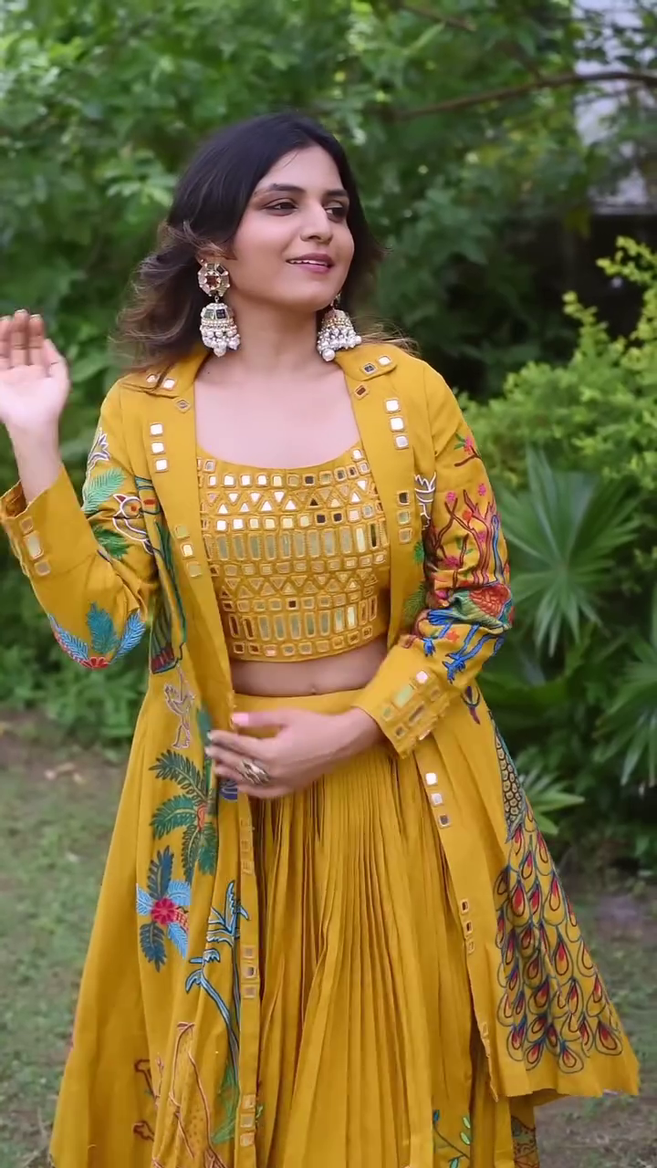 Whether you’re attending a sangeet, mehndi, or festive celebration, this sharara suit set promises to elevate your ethnic wardrobe. Its combination of fine fabrics, vibrant yellow color, and traditional embroidery make it a standout outfit for any special occasion.