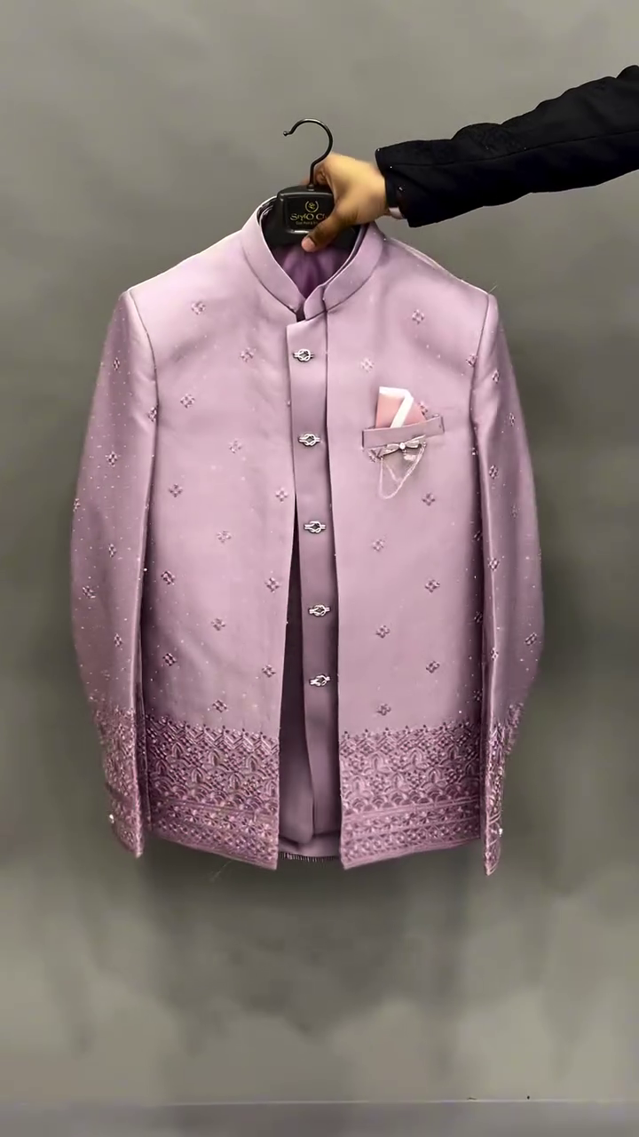 This sherwani pairs beautifully with churidar pants or tailored trousers, along with traditional footwear such as mojris or juttis. It can also be accessorized with a stole or pocket square to further elevate the look. Whether you’re the groom, a close family member, or a guest, this outfit ensures you make a lasting impression.