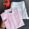 Be the first to review “Soft Elegance: Pastel Pink Shirt with Crisp White Bottoms for Effortless Style”