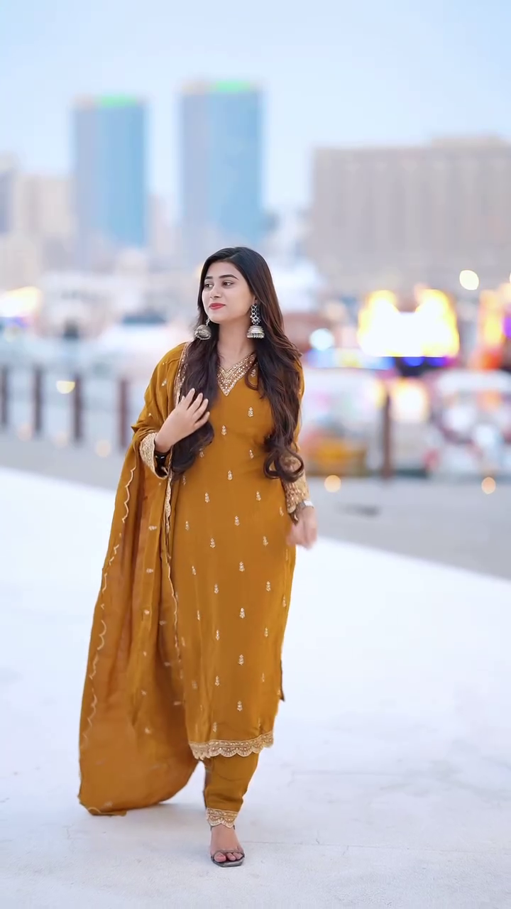 The **New Palazzo Party Sharara Suit & Dupatta Set** is a showstopper ensemble, designed to make a bold and stunning statement at any special occasion. Combining luxurious **Maska Silk** with intricate embroidery, this outfit captures the essence of elegance and style. Here’s a detailed breakdown of its features: