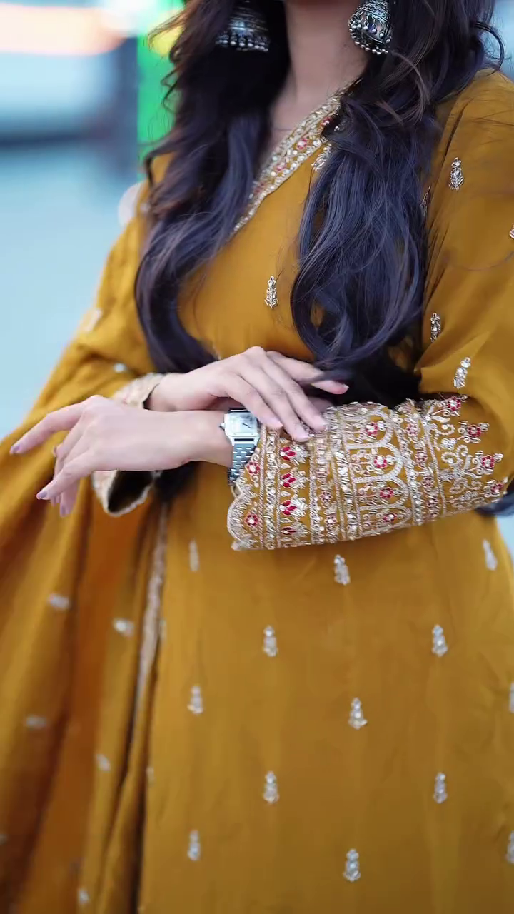 – Embroidered with finesse, the georgette dupatta enhances the overall look with its graceful fall and subtle detailing.