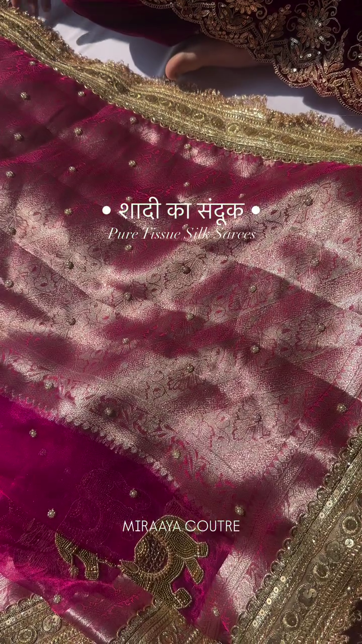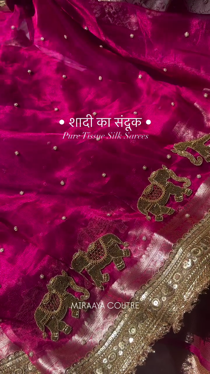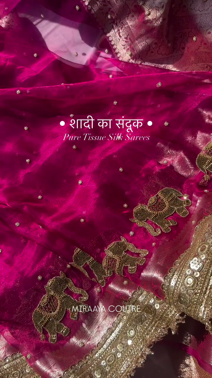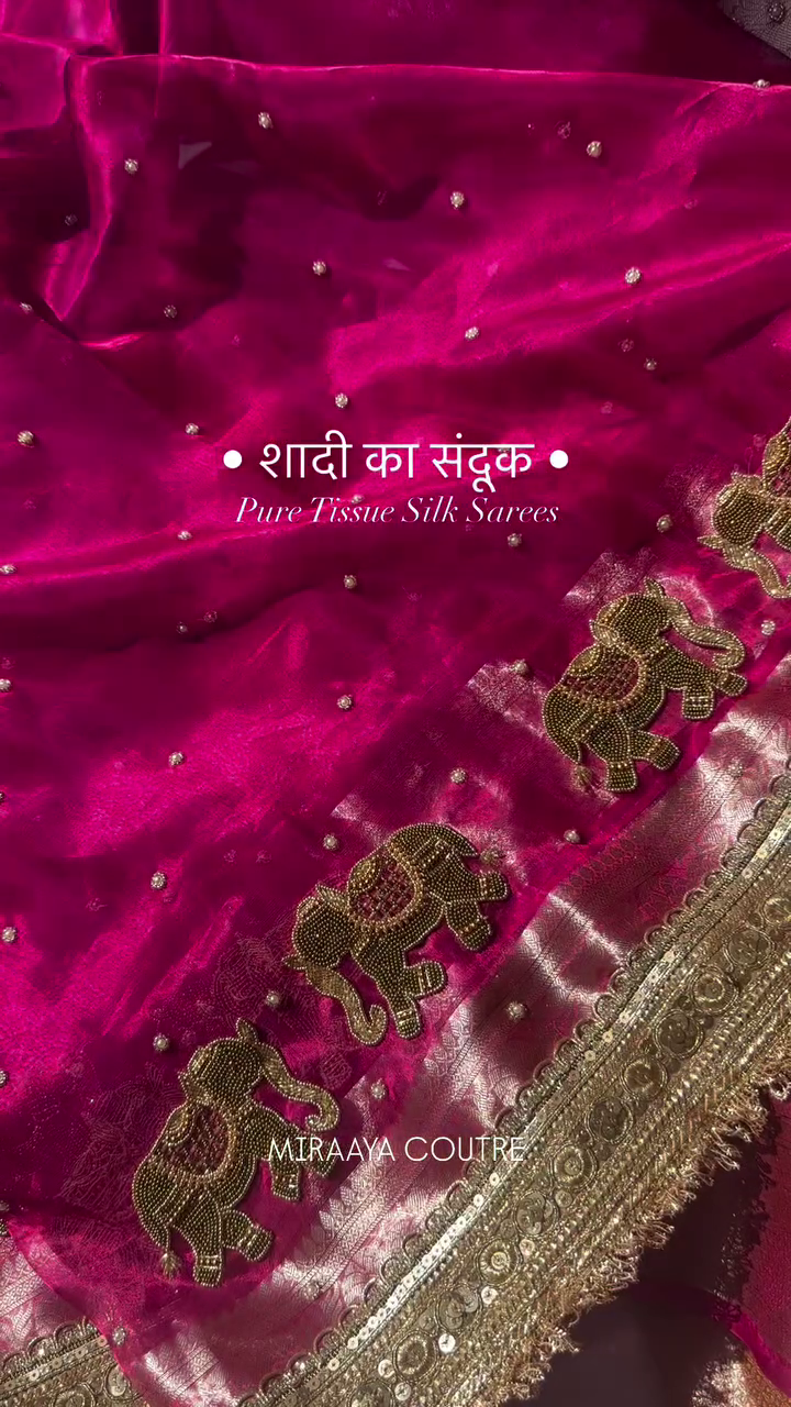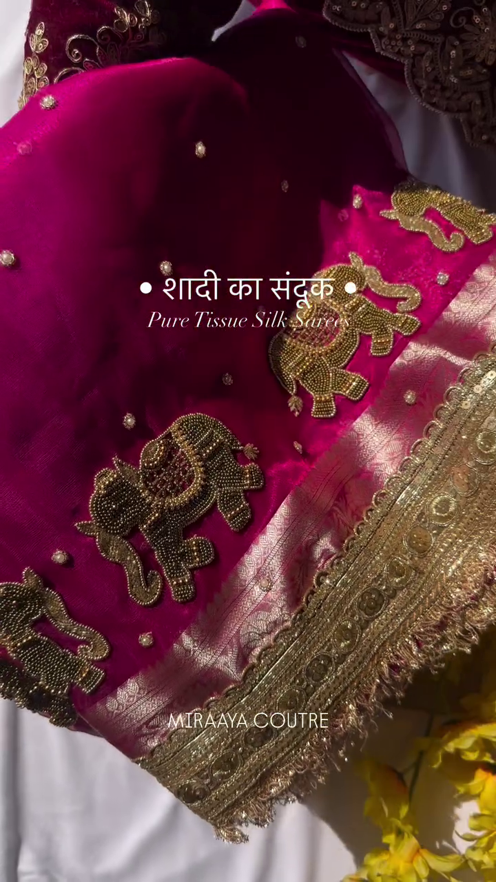 Step into the world of timeless elegance with this Pink Banarasi Tissue Silk Saree, a masterpiece adorned with intricate hand embroidery. Every stitch tells a story of craftsmanship, tradition, and luxury, making it the perfect pick for a bride’s treasure trove. The delicate detailing, shimmering fabric, and exquisite elephant embroidery make this saree a true heirloom piece—one to cherish for a lifetime. 💕