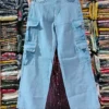 Upgrade your casual wardrobe with these light blue denim cargo jeans, designed to combine practicality with effortless style. Featuring a wide-leg fit and multiple utility pockets, these jeans are perfect for those who appreciate functional fashion without compromising on contemporary trends. Whether you’re hitting the streets, going for a weekend outing, or looking for statement casual wear, these cargo jeans are an ideal choice.