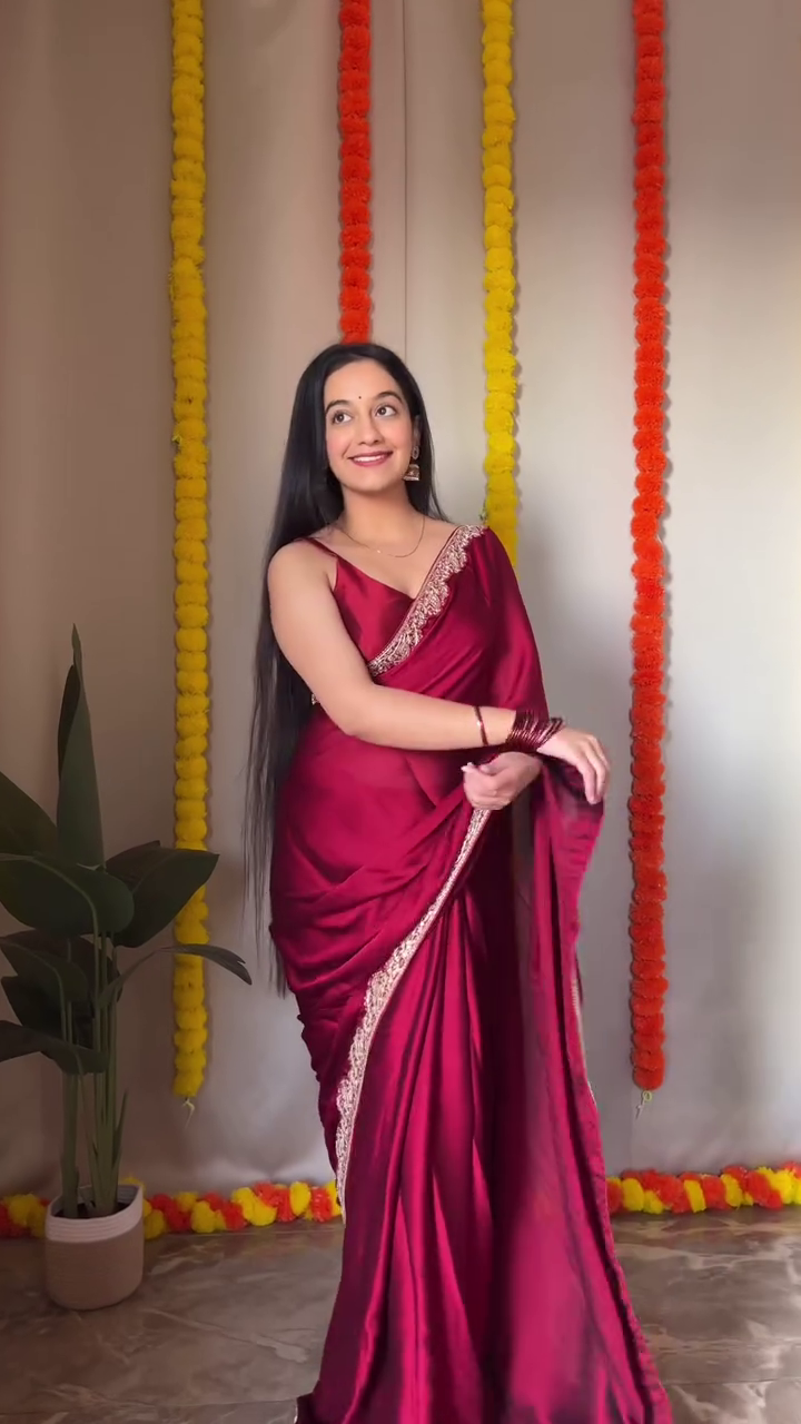 Women’s Ready-to-Wear Satin Silk Pre-Pleated Saree