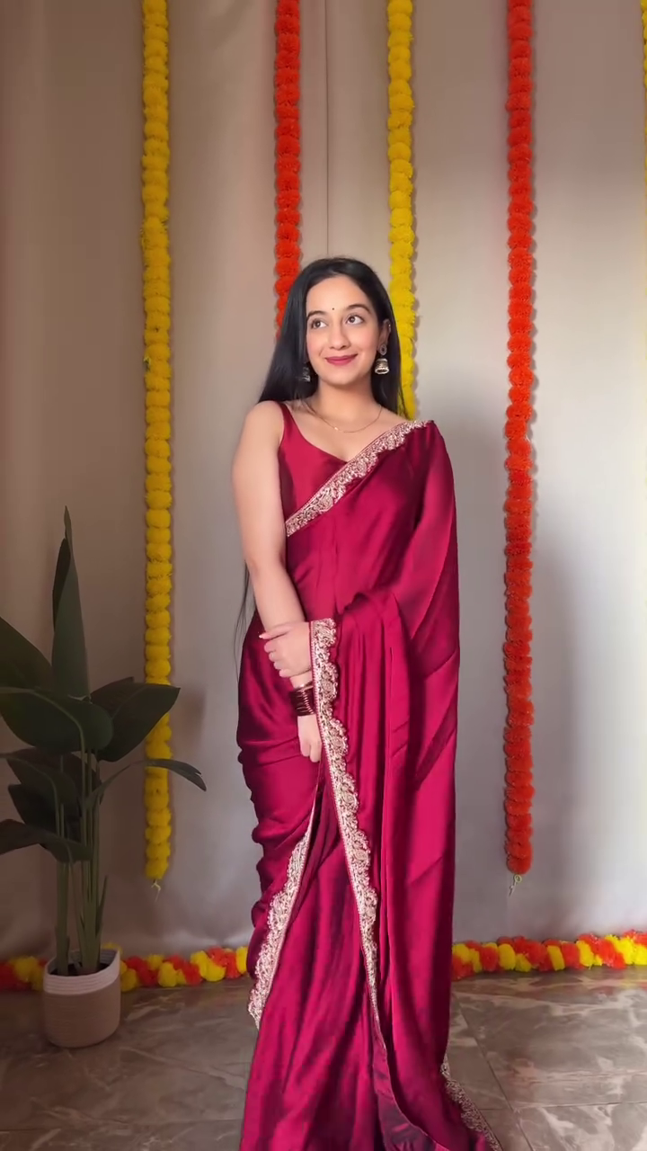 - No more hassle with traditional draping! This pre-pleated saree allows you to achieve a flawless look in just one minute, perfect for modern women on the go.